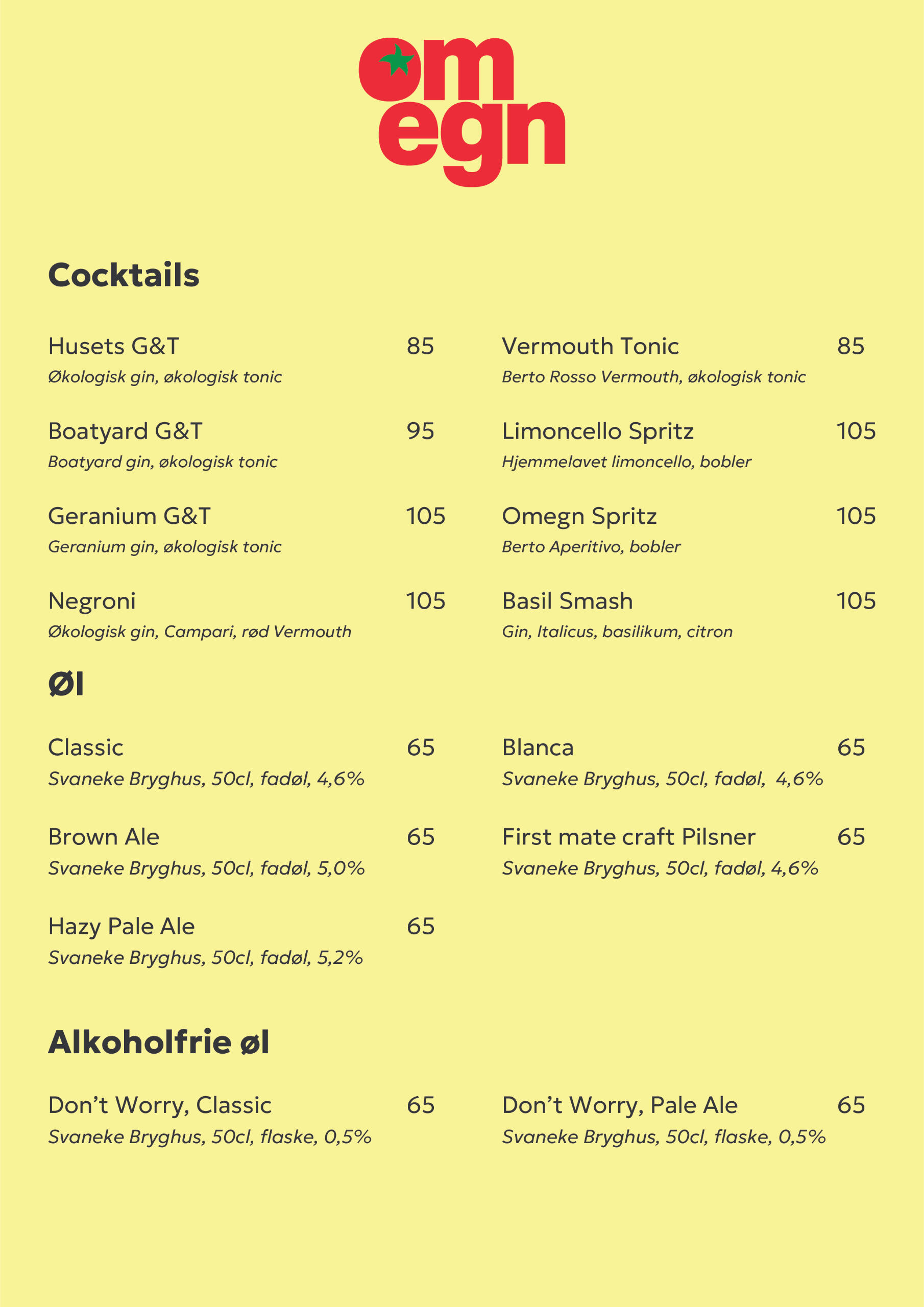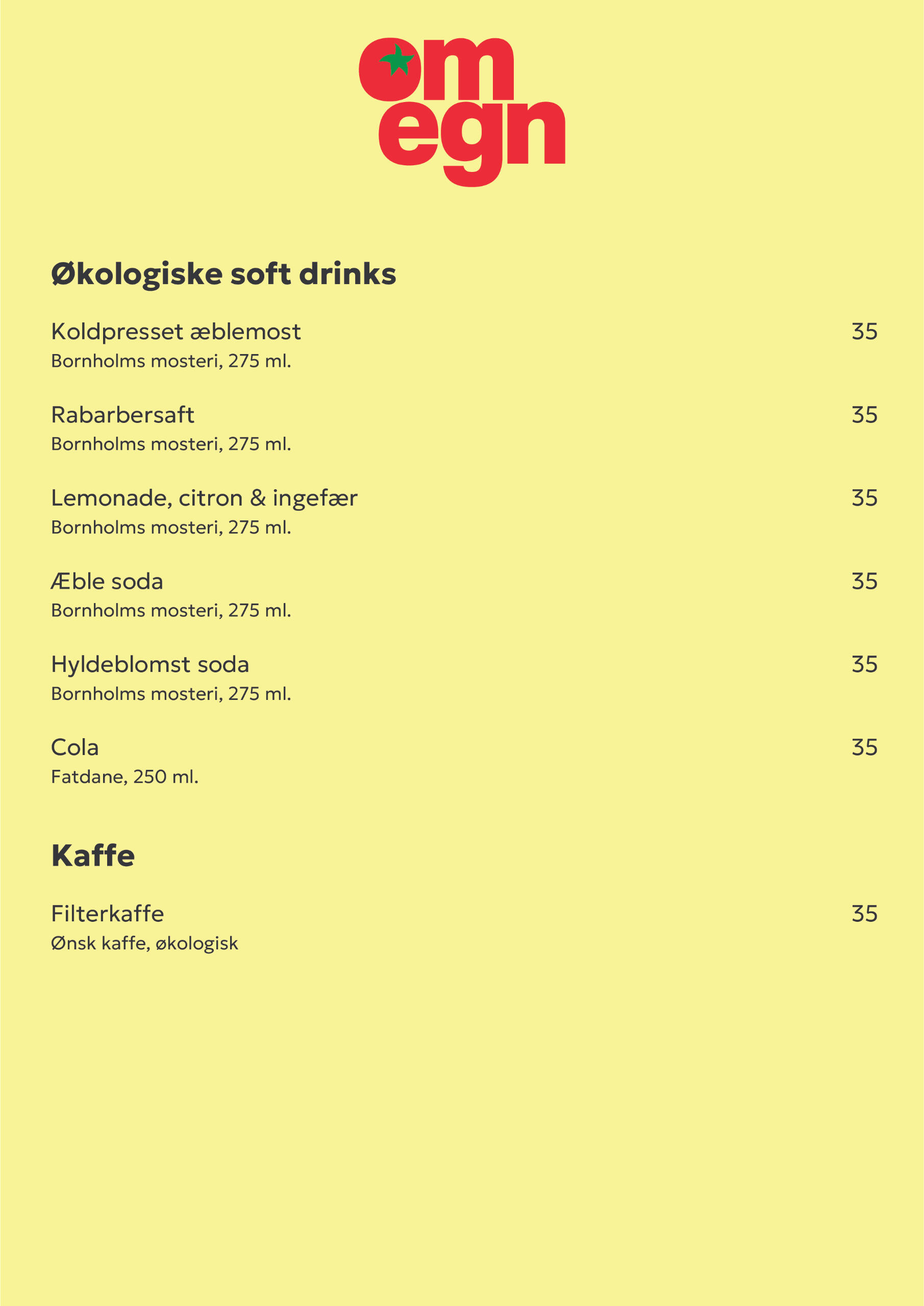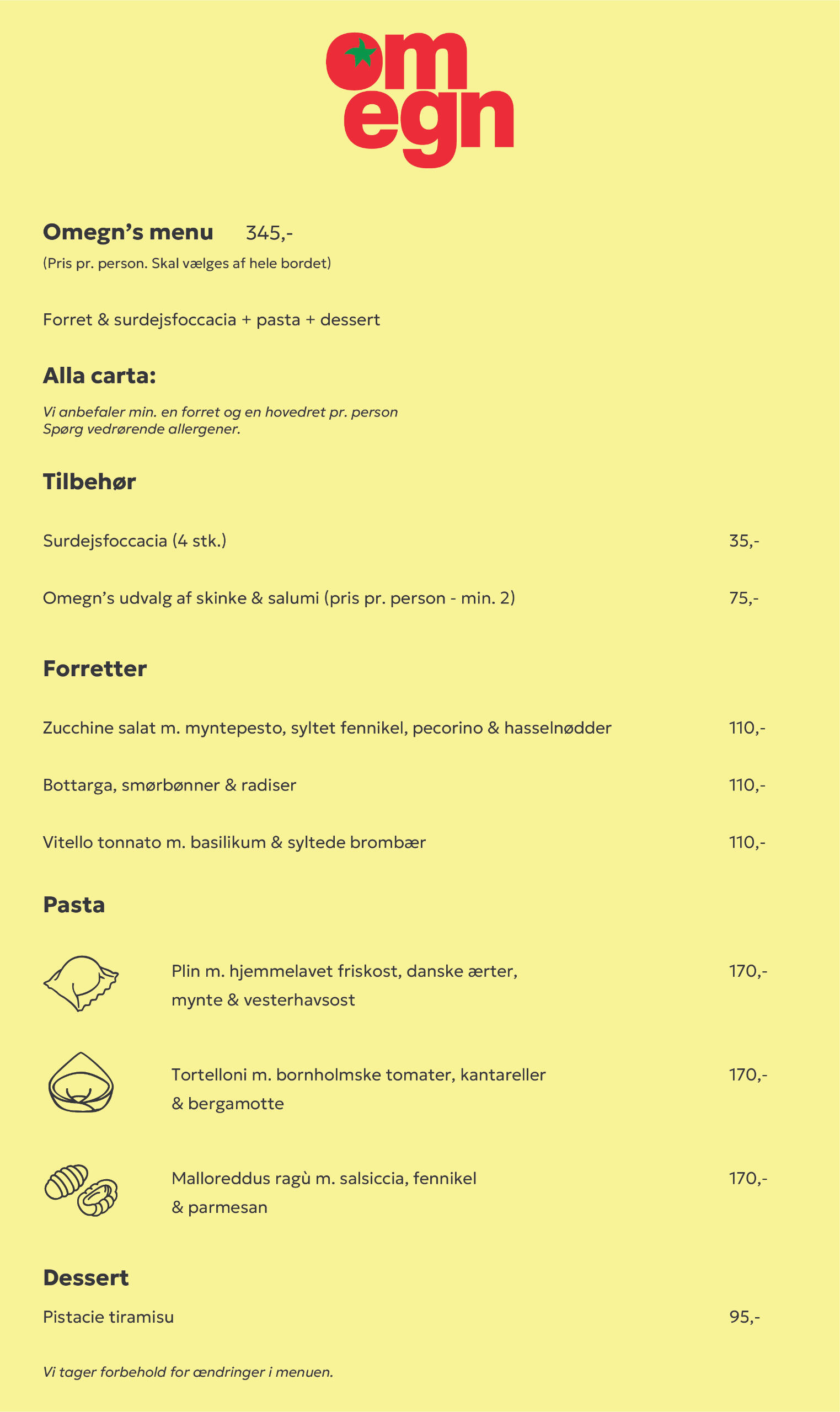 Omegn er et moderne Osteria under åben himmel i hjertet af Sandvig. Her får du frisk pasta, lokale råvarer og ærlig betjening i afslappede omgivelser. Menuen skifter med sæsonen og stemningen er uformel, nysgerrig og nærværende.